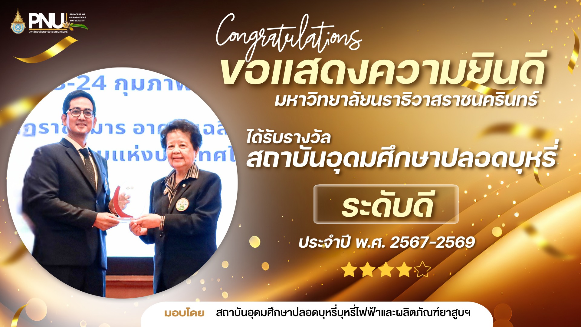 มหาวิทยาลัยนราธิวาสราชนครินทร์ ได้รับรางวัล สถาบันอุดมศึกษาปลอดบุหรี่ ระดับดี ประจำปี พ.ศ. 2567–2569